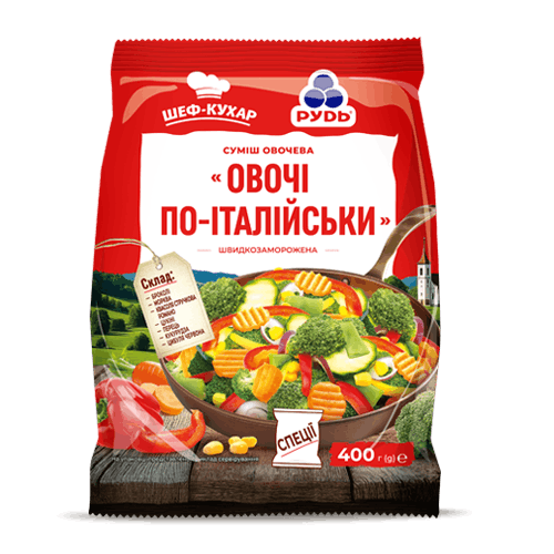 Vegetable combination with an Italian accent in taste and aroma! Ingredients: Broccoli, carrots, romano beans, zucchini, yellow bell pepper, red bell pepper, corn, red onion. Moreover, the vegetable mix contains a separate bag of spices, including: Basil, tomatoes, oregano, pepper, paprika, etc.