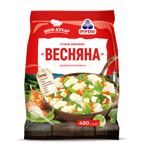 Овощи содержат клетчатку, витамины и минеральные вещества, необходимые для рационального питания. Состав: цветная капуста, морковь, спаржевая фасоль, брюссельская капуста, капуста брокколи, сельдерей корень, лук репчатый.